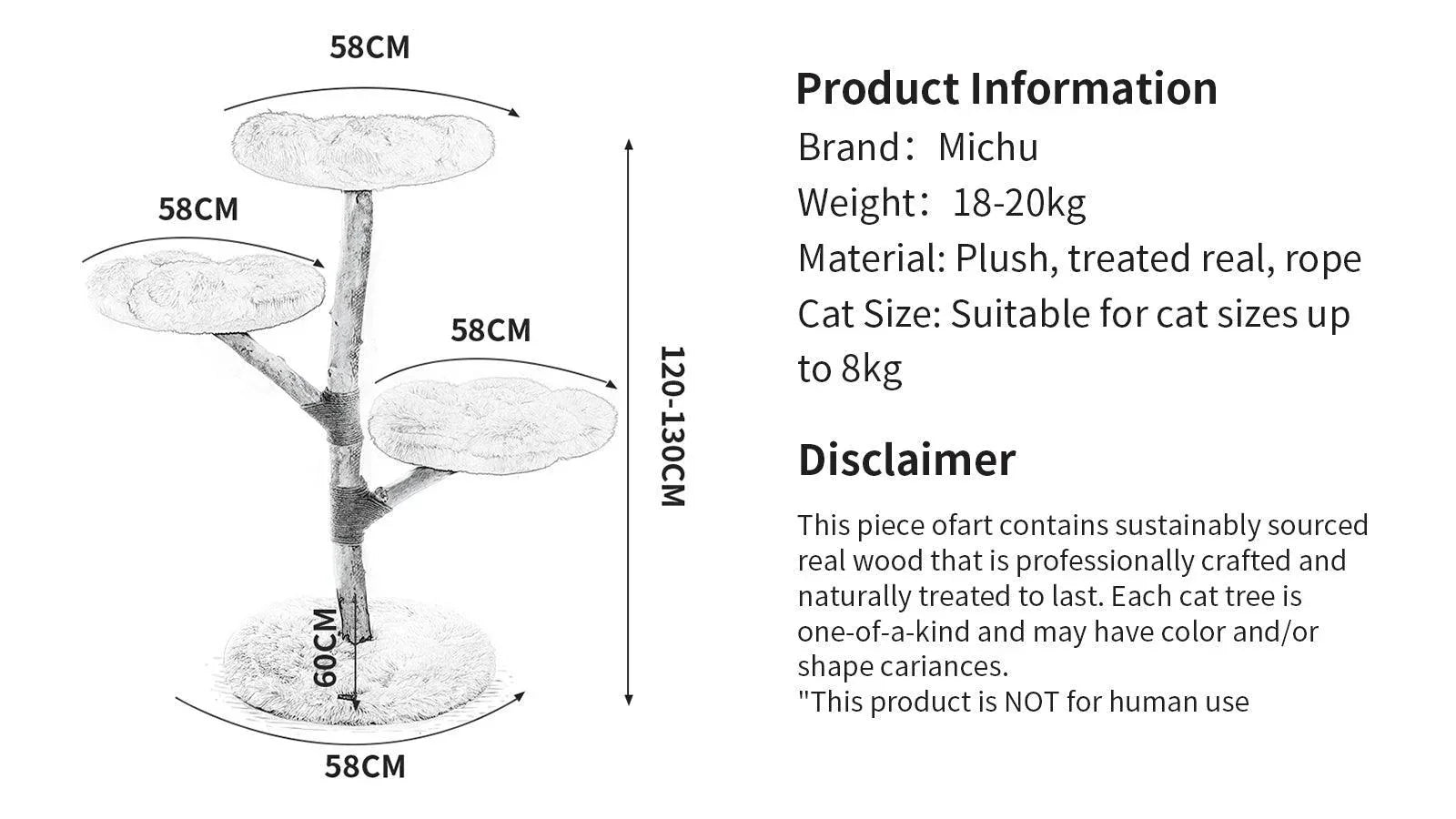 This is a premium quality, extra-large cat tree made from real wood, designed with multiple levels, plush petals, and sturdy scratching posts. It provides a stylish and comfortable space for cats of all sizes to play, climb, and relax.