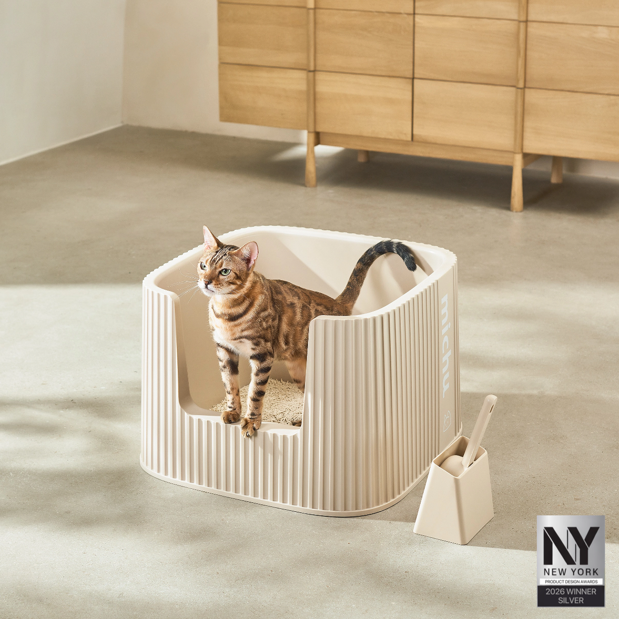Yes, each litter box purchase includes a complimentary cat litter scoop set, and you can choose to add a matching litter mat or bamboo lid for enhanced functionality.